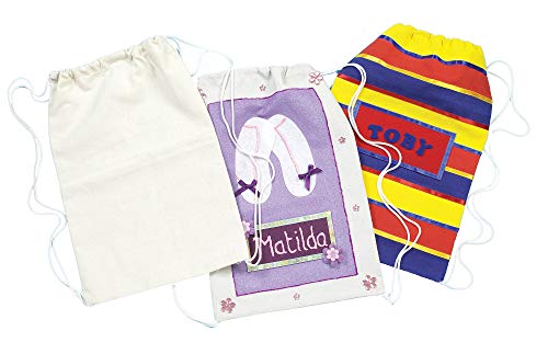 Maak het uniek: eenvoudige, duurzame Calico-rugzakken van stof, met textielverf, stofstiften, pailletten, om op te plakken en sieraden. Ideaal voor school, sport of uitstapjes.