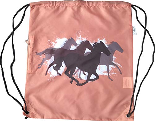 Specification: Chilino kleurrijke opvouwbare rugzak/rugzak/gymtas, polyester, paarden, kastanjebruin, 43 x 39 cm